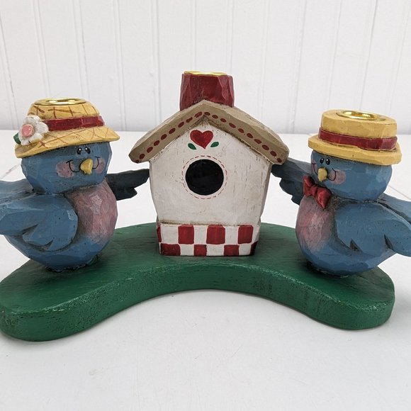 Vintage Eddie Walker Candle Holder Blue Bird Couple Birdhouse Holds 3 Candles
