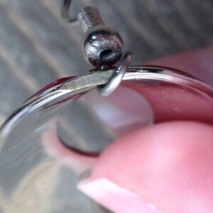 Both enamel and silver-tone metal are in great condition, with very little wear. Earrings have what appear to be manufacturing imperfections along the edges on the sides and at the top (see last two photos).