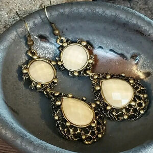 Vintage Edgy Victorian Style Antique Brass Teardrop Earrings