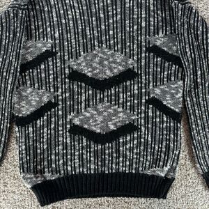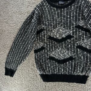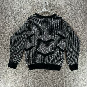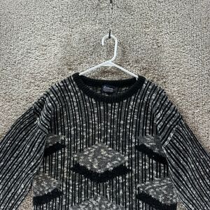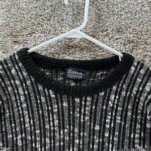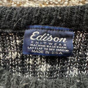 Vintage Edison Knitwear Sweater Mens Large Silver Black Pullover Made In USA VTG