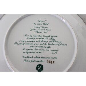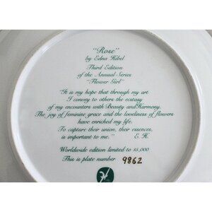 Vintage Edna Hibel Porcelain Collector Plate "Rose" from the Flower Girl 1987 series - numbered 9682/15,000.