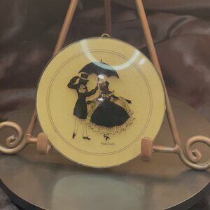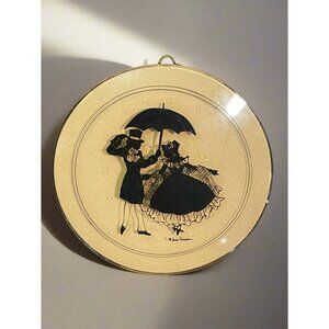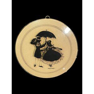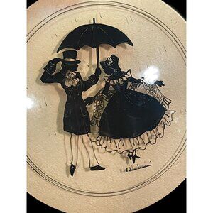 Enhance your decor with this charming Vintage Edna Lewis Studio Hand Painted Silhouette Round Convex Glass Wall Decor, featuring a beautifully hand-painted silhouette of a couple. This exquisite piece combines artistry with a nostalgic touch, showcasing the distinctive style of Edna Lewis Studio.