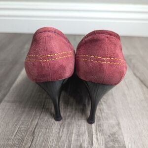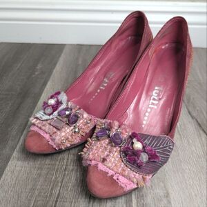 Vintage Edoardo Tulli berry dark pink suede embellished beaded heel 37 EU / 7 US