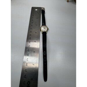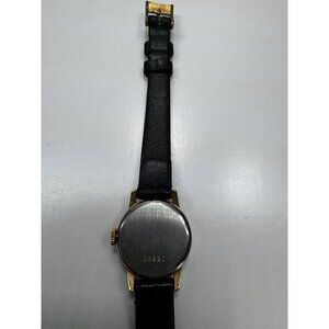 Vintage Edox Swiss Ladies Watch Gold Tone Case Black Leather Band 28690 Works