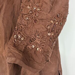 Vintage Edward Womens 100% Silk Button Up Tunic Shirt Size 12 Sequins Lagenlook