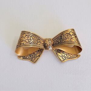 Vintage Edwardian Style Gold Tone Bow Brooch, Pin, Lapel