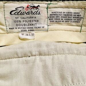 Vintage Edwards of California 100% Polyester Doubleknit Dk Green Trousers w/ Tag