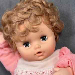 Vintage Eegee Goldberger 1981 Hong Kong Baby Doll Curly Sleepy Eyes Soft Body