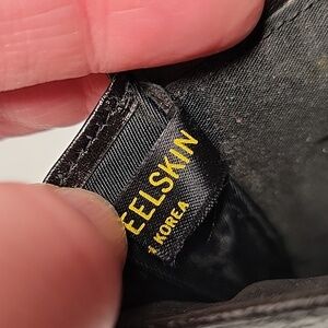 Vintage Eel Skin Leather Clutch Purse Black Fold Over Soft Pockets Handbag