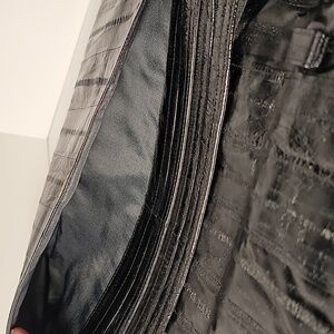 *No wear noted. Two loops noted to inside flaps to attach straps/chain to convert it to a shoulder purse. Straps/chains not included. This is being sold as a clutch. Slight discoloration noted to gold magnetic snap*
