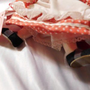 The doll is in overall good condition, there's a few "red marks" on her dress by the waist, please see pictures