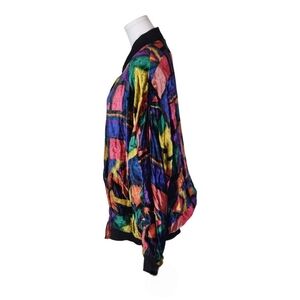 Vintage Effeci Colorful Velvet Bomber Jacket Abstract Print Zip M 80s 90s