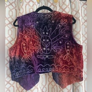 Vintage Effeci Women's Purple and Red Embroidered Vest