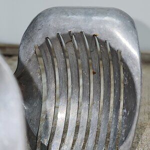 You are looking at a vintage egg, vegetable or fruit slicer guide tongs holder. Leaving cleaning to buyer.