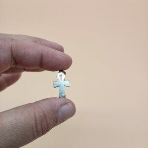 Vintage silver/silver tone goth Egyptian ankh pendant. Not marked silver but has tarnish that I have removed. Measures 3/4" tall. Excellent vintage condition. Some tarnish remaining.