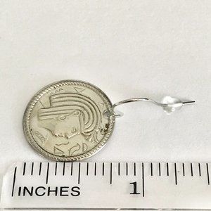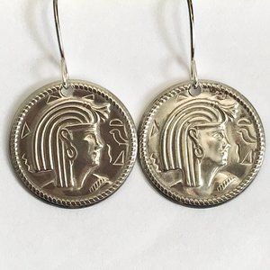 Vintage Egyptian Coin Charm Earrings Silver Plated Dangle Egypt Lady Queen