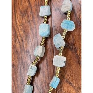 Vintage Egyptian Larimar Carved Stone Scarab Beetle Revival Beaded Necklace Teal