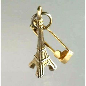 This is a vintage gold tone souvenir from Paris France, has the Eiffel Tower charm hanging from a gold tone Paris Bar, measures 1 1/8 inches wide by 1.5 inches long. Excellent condition. Gorgeous, Eiffel Tower, Visit Paris, Pin Brooch