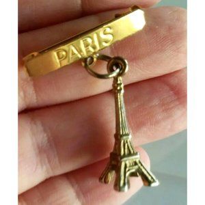 Vintage Eiffel Tower Charm on Paris Bar Pin Souvenir of Paris brooch pin