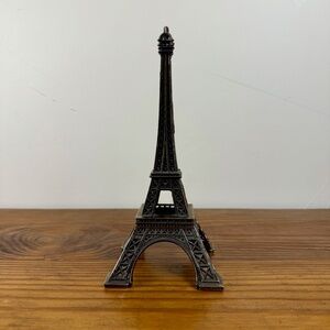 Bring the charm of Paris to your home with this vintage Eiffel Tower souvenir figurine. Standing at 7.25" tall, this metal replica captures the intricate detail of the iconic French landmark with a bronzed patina finish. Perfect as a bookshelf accent, travel memento, or unique desk decor.