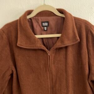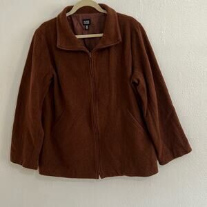 Vintage Eileen Fisher Heavy Brown Italian Wool Zip Up Funnel Neck Jacket Size M