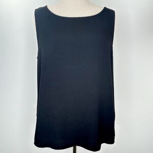 Vintage Eileen Fisher Top Women 1X Black Waffle Knit Y2K Preppy Minimalist Tank Business Casual Office Work Academia Classic Made in USA