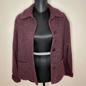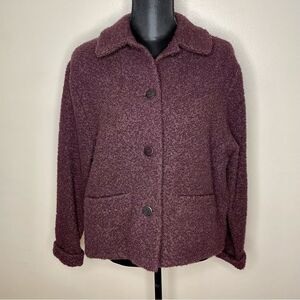 Vintage Eileen Fisher Wool Coat Boucle Button Front Coatigan Purple Size Medium