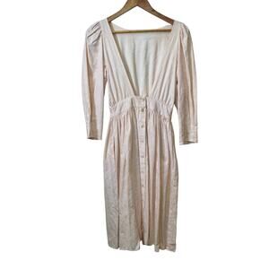 Vintage Eileen West Size 6 Pink 100% Cotton Jacquard Backless Midi Dress