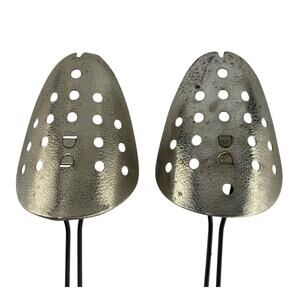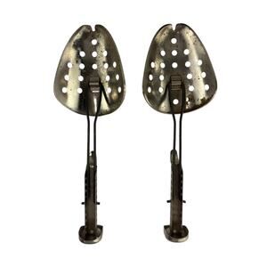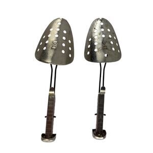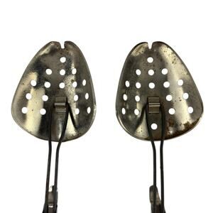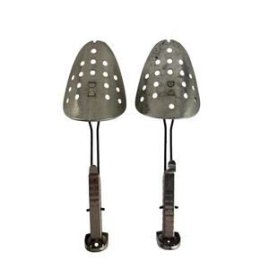 Vintage Ekco adjustable metal shoe stretchers with size markings from 5 to 12. Sturdy construction with perforated toe pieces and adjustable mechanisms. Marked “Ekco USA.” Designed to help maintain shoe shape or gently stretch for comfort. Classic vintage shoe care accessory, practical and collectible.