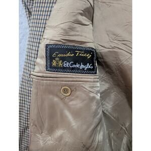 Vintage El Corte Ingles Sport Coat Men Small Plaid Lined Two-Button Suit Jacket