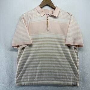 Vintage Elandale Polo Shirt Mens Large Pink White Striped Knit Mob Old Money 90s