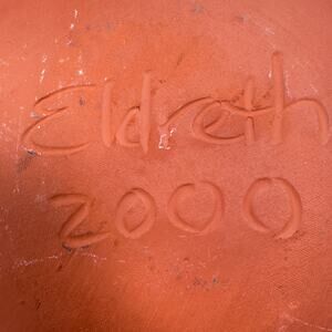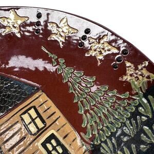 Vintage Eldreth Pottery Redware Plate Brown House Stars Trees Signed Glaze 2000
