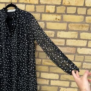 Vintage Eleanor Brenner 1970's Polka Dot Long Sleeve Maxi Dress Size 8 *Flaw