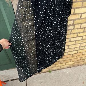 Preowned Vintage Eleanor Brenner 1970's Polka Dot Long Sleeve Layered Maxi Dress. Used condition - one flaw in the stitching on one underarm seam. Could be repaired easily.