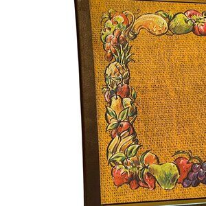 This vintage electric food warmer tray features a vibrant fruit border design, providing a unique and decorative touch for serving meals. The electric function ensures consistent warmth, ideal for maintaining food temperature during gatherings or events. Its charming design makes it an attractive addition to any kitchen or dining space.