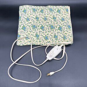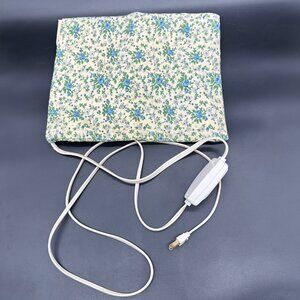 Vintage Electric Heating Pad Blue Floral Cover Temperature Control Retro