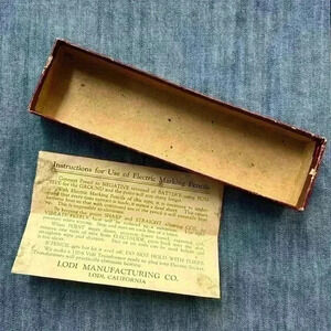 Vintage electric pencil for display piece. I do not know if it works and should be used as a vintage collectors item. Made in Lodi, California as shown on paperwork. Top of original box is not included.