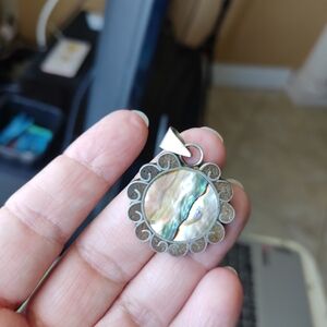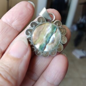 Vintage Elegant Alpaca and Abalone Shell Pendant