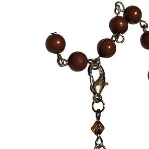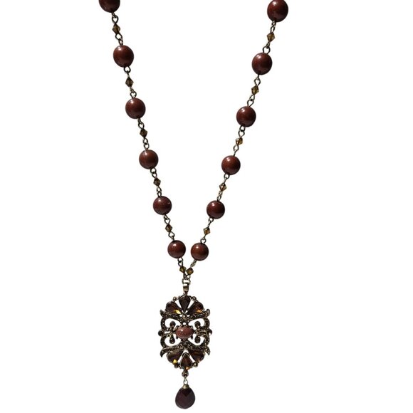 Vintage Elegant Beaded Necklace Gold Tone Pendant Brown Teardrop Charm Jewelry
