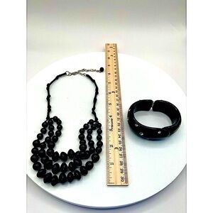 Vintage Elegant Black Beaded Necklace & Bracelet Set With Rhinestone N63