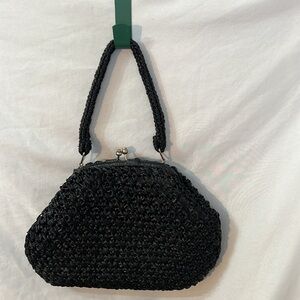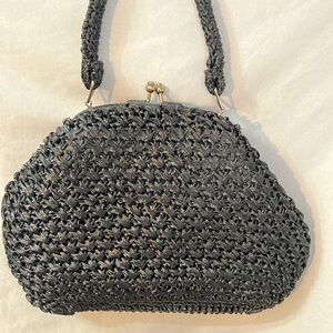 Vintage Elegant Black Straw Celephane Woven Handbag 1950s Made in Japan