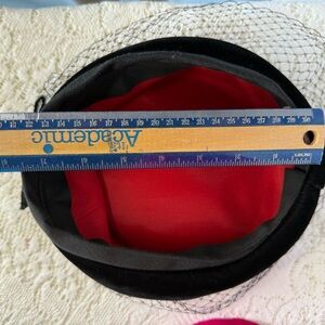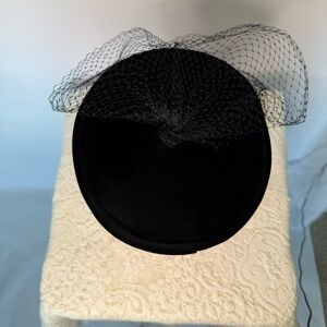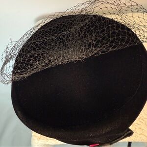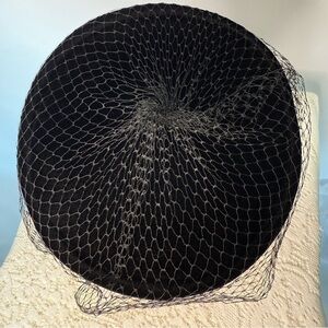 Vintage Black Velvet hat with veil. Tag reads union made in USA can’t read date.