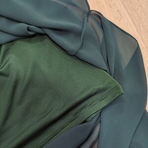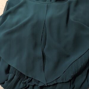 Step out in style with this elegant teal evening gown. Perfect for any special occasion, this dress offers a sophisticated look with its flowing design and rich color.