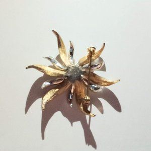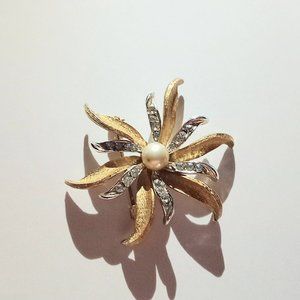 Vintage Elegant Flower Gold-tone and Silver-ton Brooch Pin Flower Star Pearl
