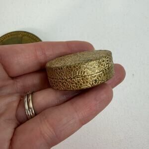 Vintage Elegant Gold Compact Mirror Pressed Powder Mini Pill Box Metal Embossed.