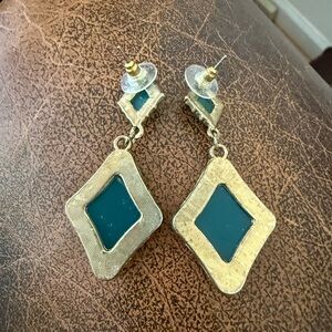 Add a touch of elegance with these stunning gold and green drop earrings. Perfect for any occasion.