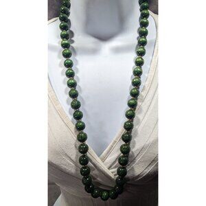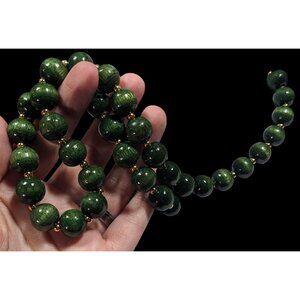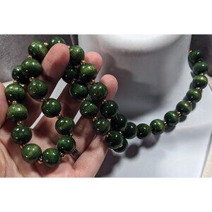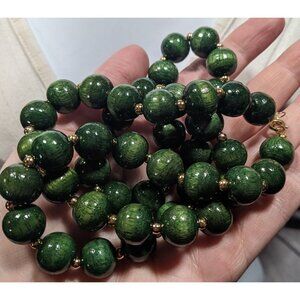 Vintage Elegant Green And Gold Tone Wood Beaded Necklace
