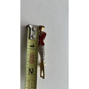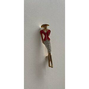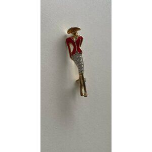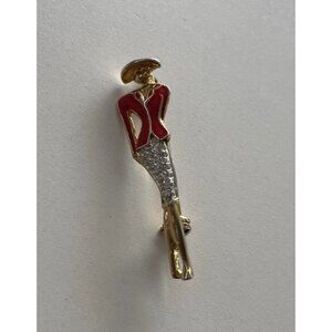Vintage Elegant Lady Art Rhinestone Gold Tone Pin Red Suite Women’s Stones