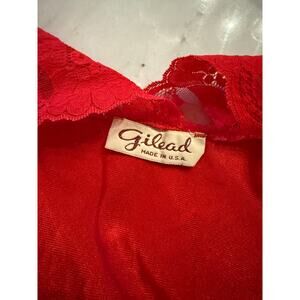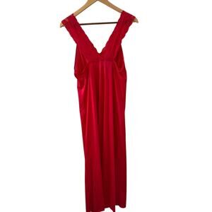 Vintage Elegant Long Lace Trim Nightgown in Candy Apple Red by Gilead. Good preowned condition, no size, approximately a S, feels like nylon, maxi length. Nice Holiday Gift