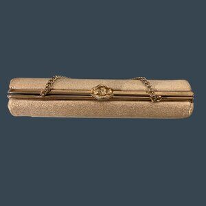 A sophisticated accessory designed to elevate evening ensembles with understated glamour. Compact and structured, this clutch offers a refined touch for formal events.